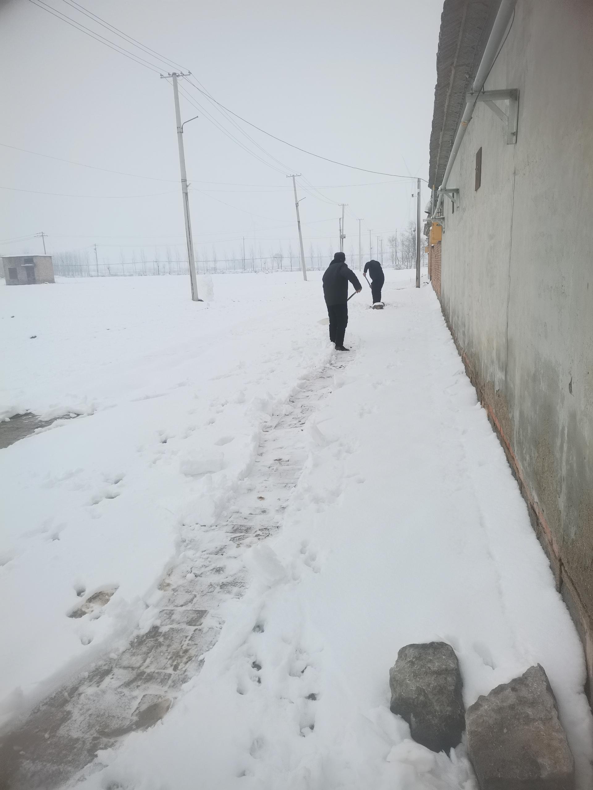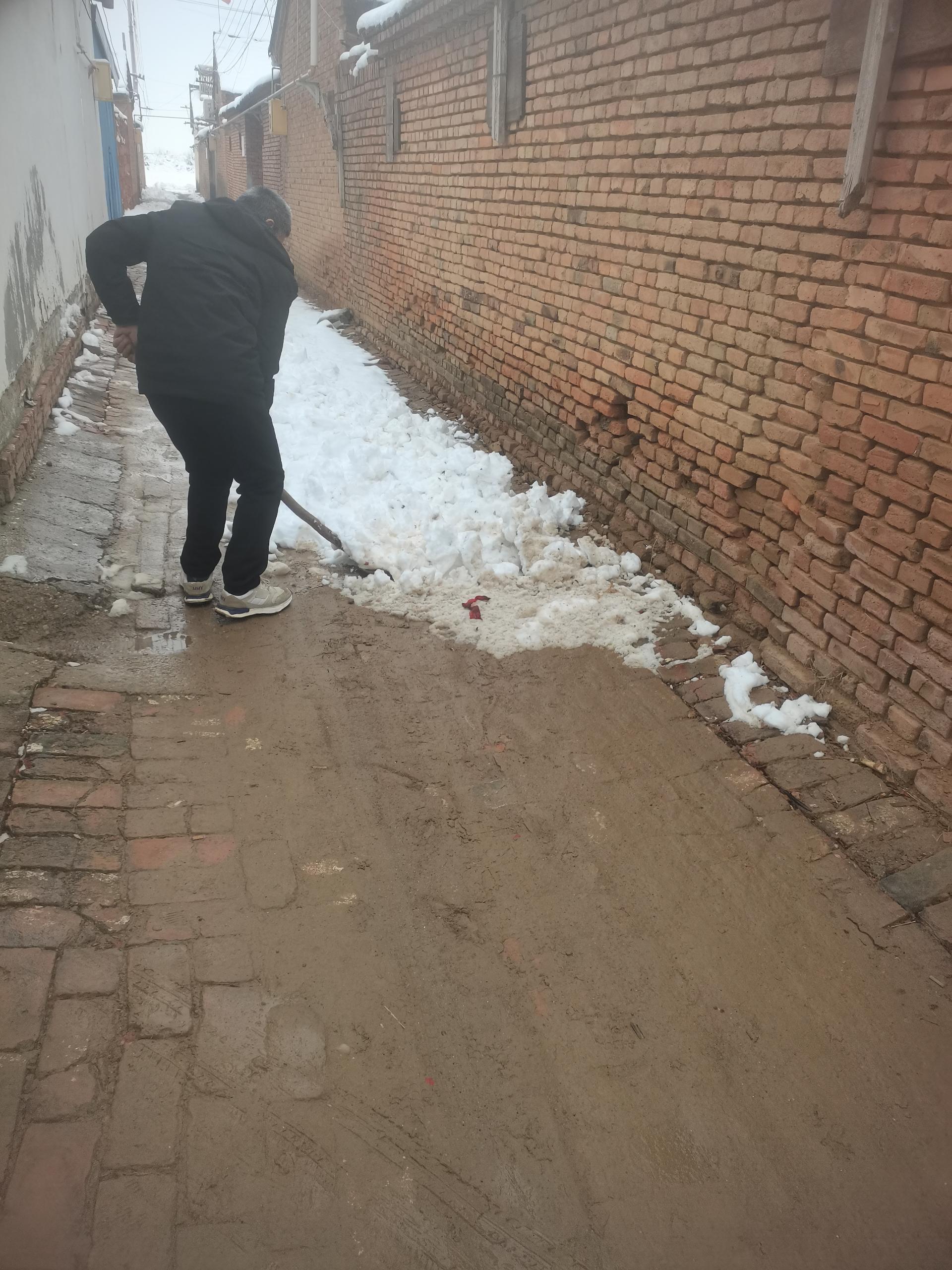 赵虎镇孙锢村开展人居环境整治志愿服务活动,一场大雪过后今天一早志愿者拿着铁锹扫帚把大街上的集雪打扫干净