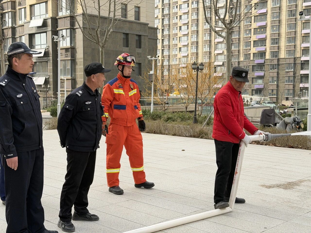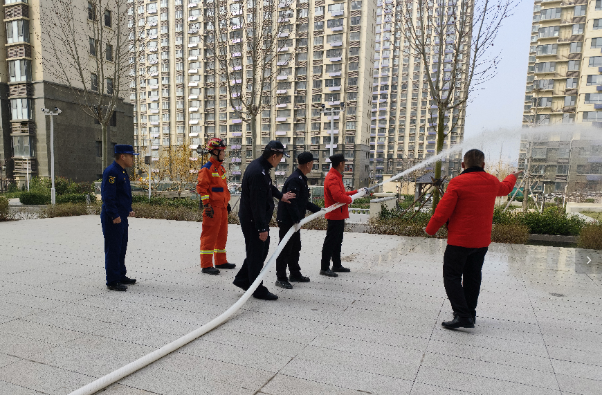 北城街道滨湖社区新时代文明实践站联合社区民警、消防救援大队、德百怡居物业开展消防演习活动,提前消防意识。