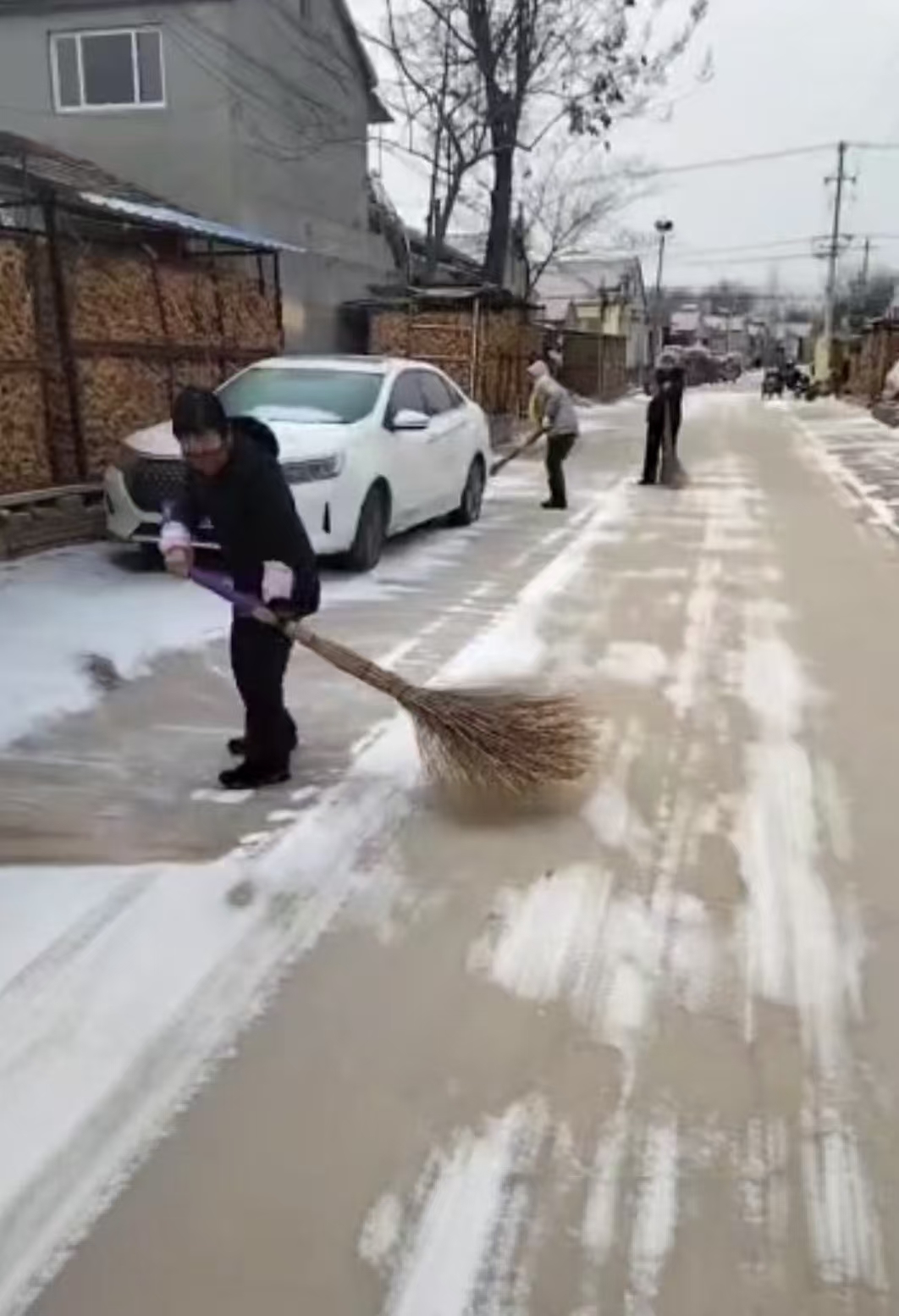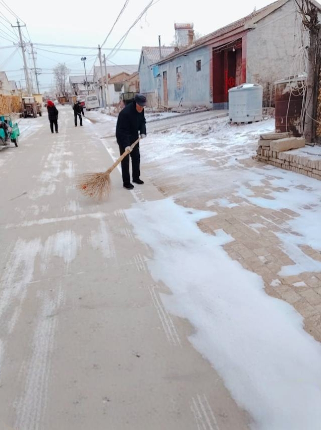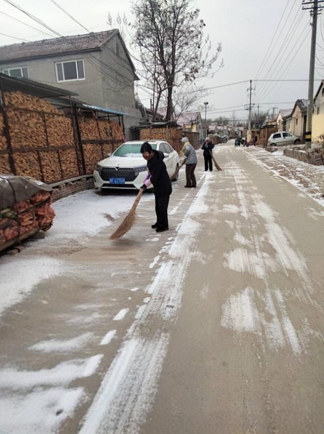 雪落街巷,志愿先行!小雪过后路面结冰,给村民出行带来诸多不便。 现发起街头扫雪行动,村里的公益岗人员带上铁锹、扫帚,一起清理积雪、扫除隐患。众人携手,扫出平安畅通路,暖透邻里守望心。 也盼热心村民主动加入,同心协力扫出坦途,共筑平安温暖的家园。