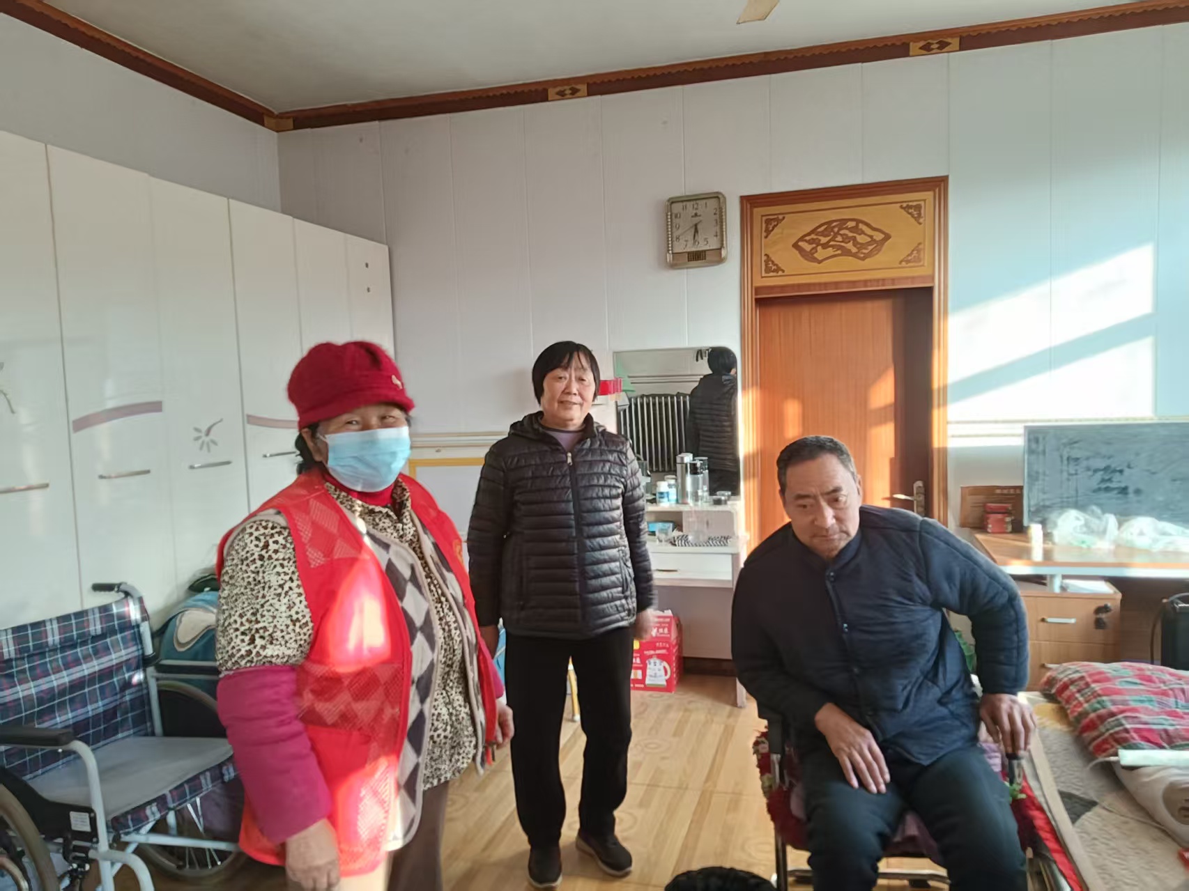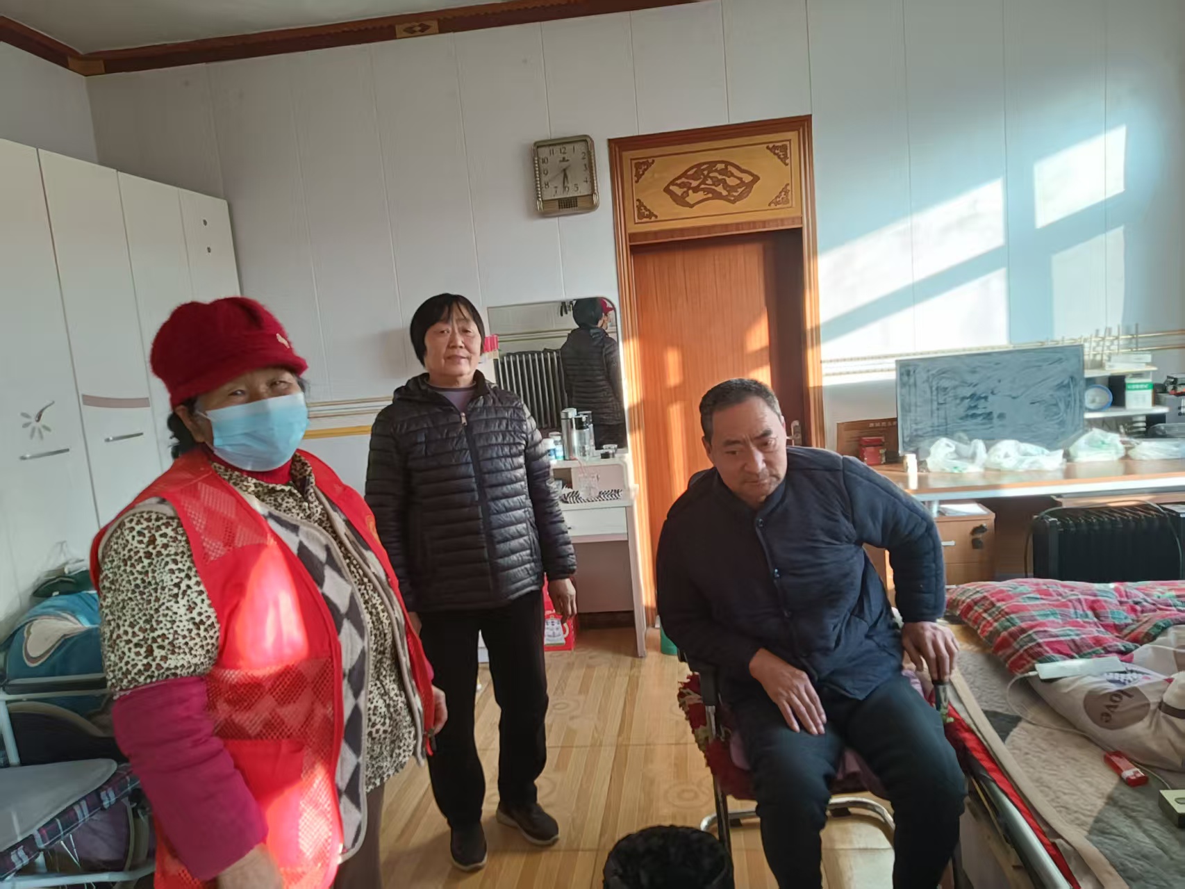 鲁权屯镇张郭秦村冬季寒冷巾帼服务人员对中越反击战老兵进行了走访慰问关心关爱他的生活与健康让他注意安全严防煤气中毒养好身体为党贡献。