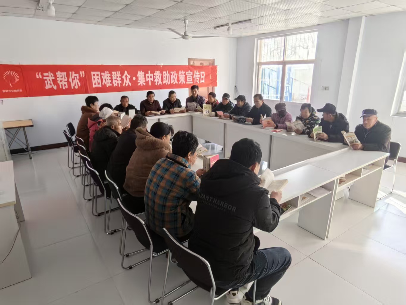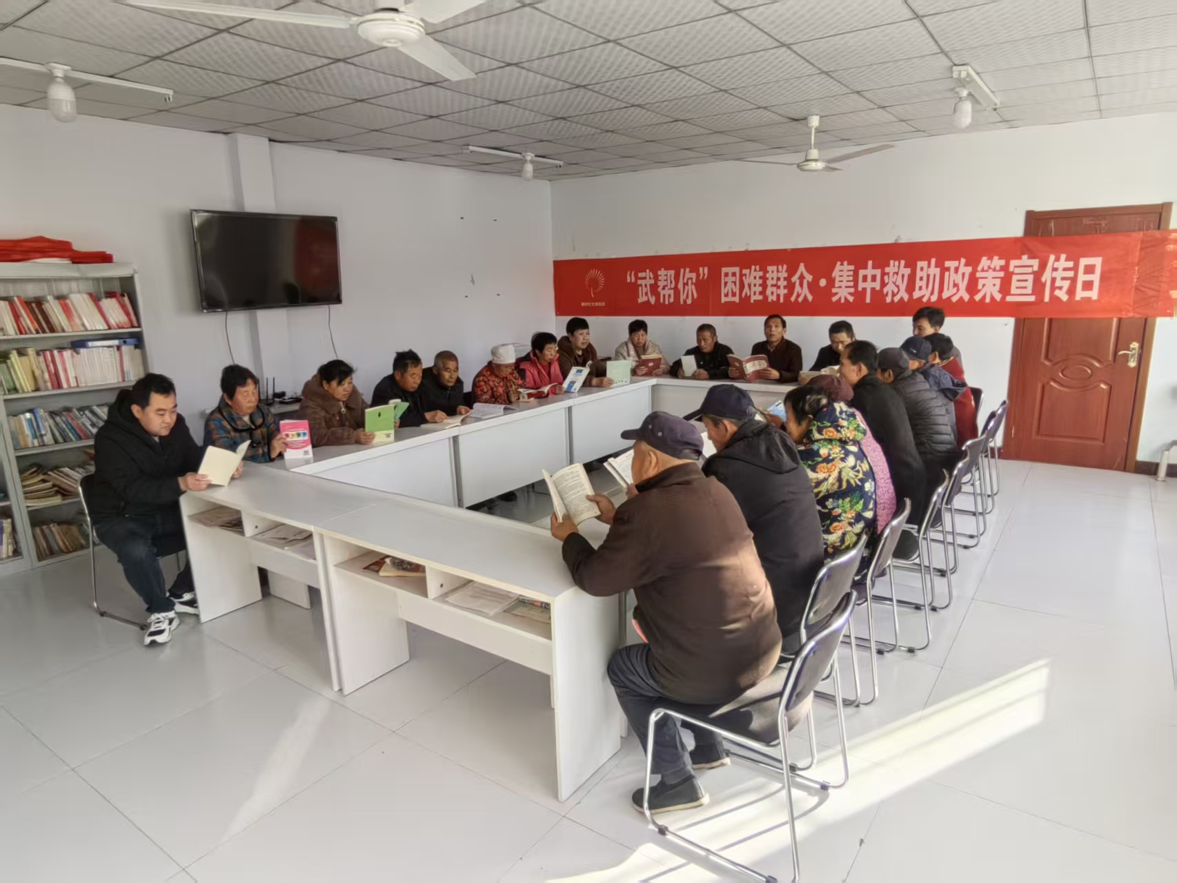 鲁权屯镇张马尧村委会组织在村人员阅读书志愿活动,人员到齐后,支部书记强调纪律要专注,阅读不要闲谈对阅读不相关的问题。