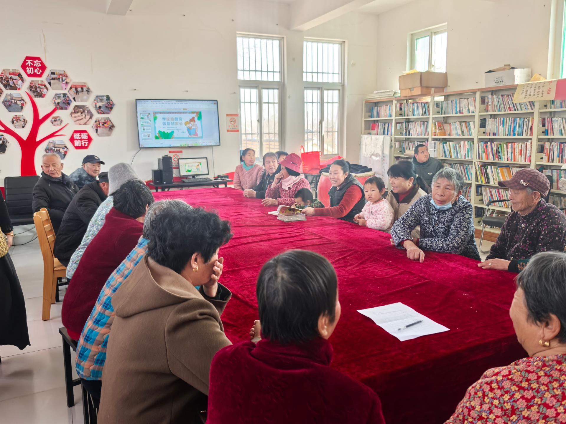 天衢新区赵虎镇赵芙蓉平福卢管区开展“家庭教育指导服务近社区”活动。活动中志愿者通过张贴条幅播放视频的形式让村民们了解家庭教育的重要性。