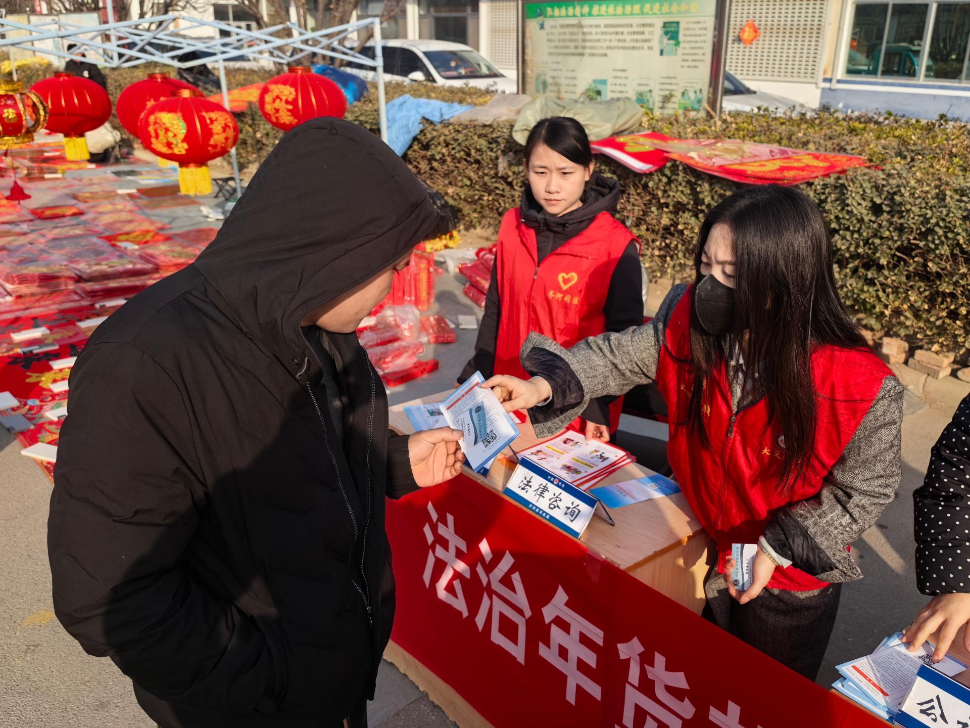 2026年1月29日起,齐河县司法局常态化开展新春普法宣传志愿服务活动。组织普法志愿者、村居法律顾问走进村社区,围绕反诈防骗、农民工权益保障等内容普及法律知识,将满载法治干货的“新春礼包”送到群众手中。