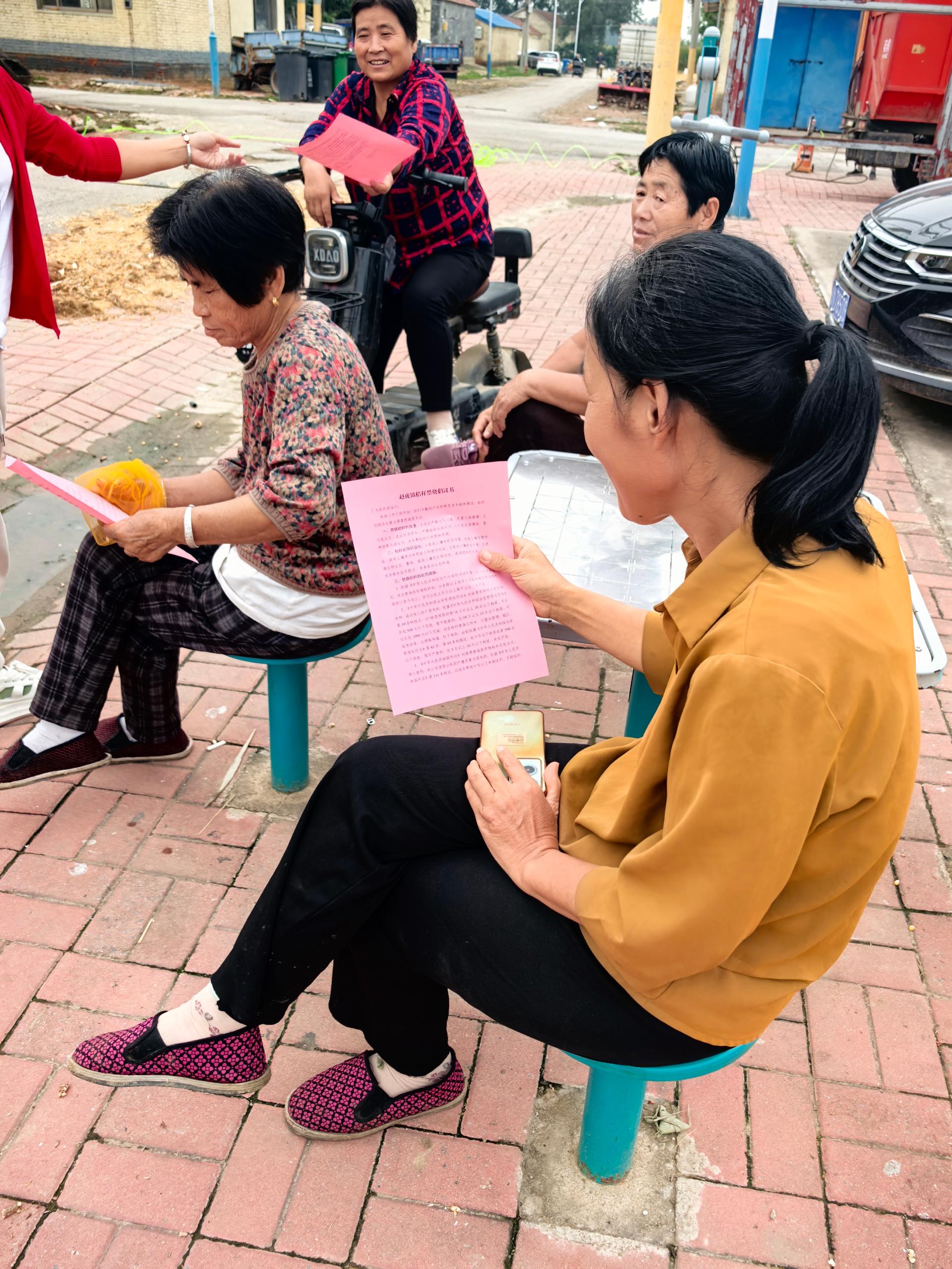 天衢新区赵虎镇曹韩村开展秸秆禁烧倡议书,志愿者们通过发放宣传单的形式,让广大村民们了解焚烧秸秆的危害。