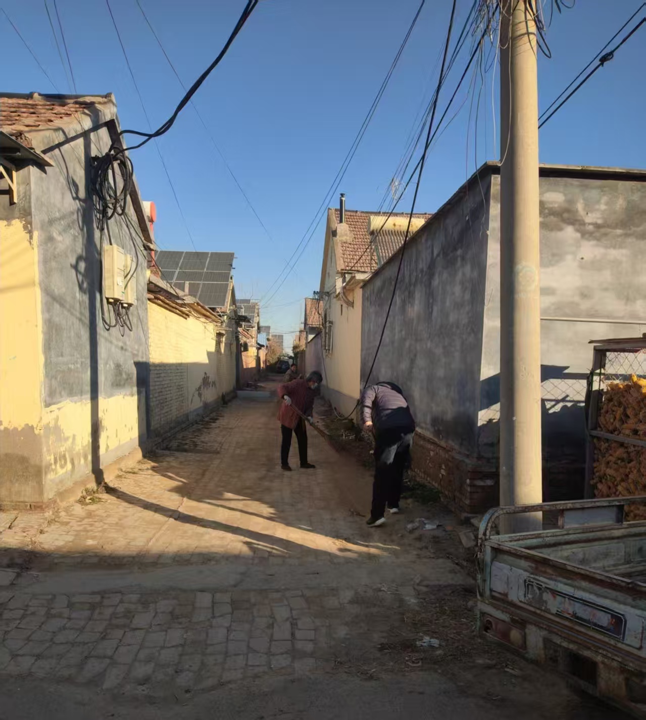 寇庄村支部书记带领党员和群众代表进行垃圾卫生清理活动,主要清理街道两侧排水沟卫生和各个街道的卫生清理