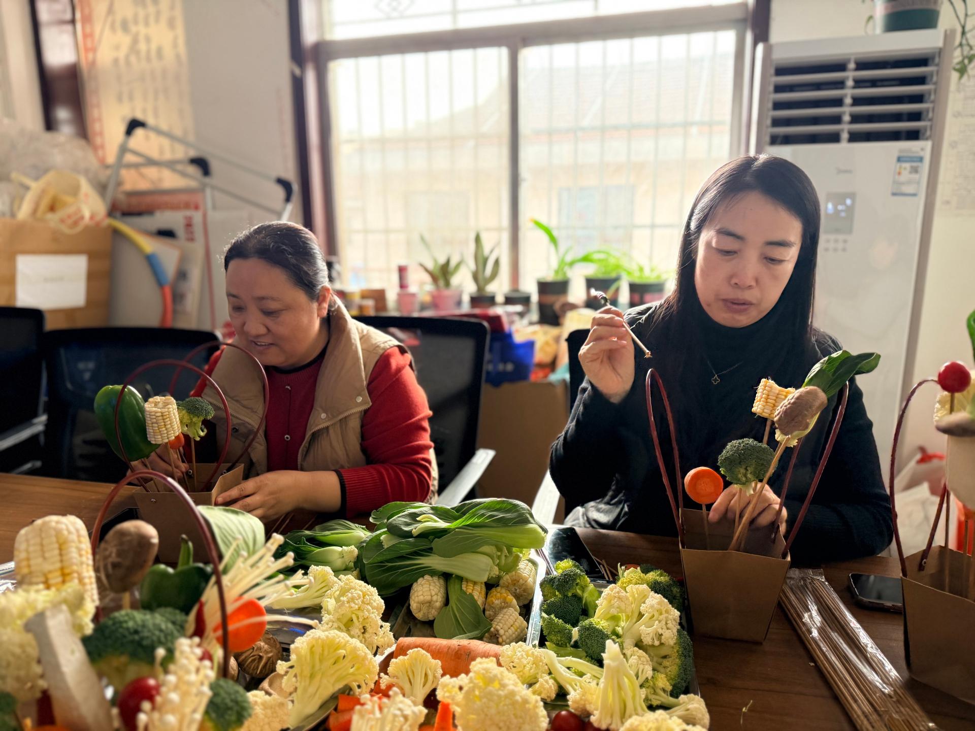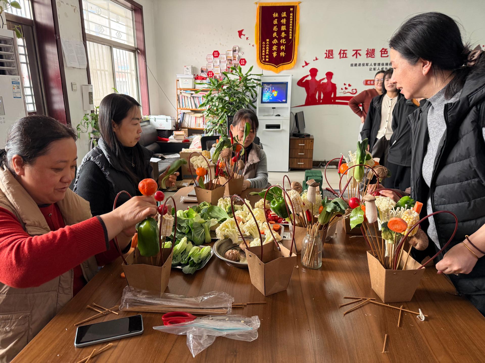 银城街道东苑社区新时代文明实践站开展蔬菜花篮活动