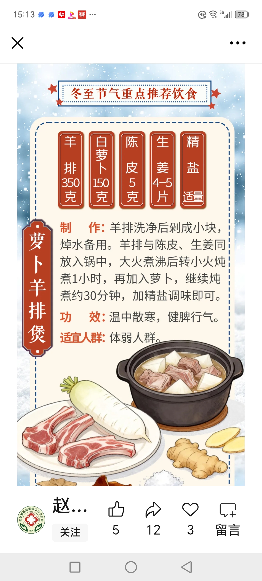 德州市天衢新区赵虎镇大吴村开展“冬至节气话养生”讲座活动。村委干部接上级政策邀请专业养生人员前来为村民讲述冬至养生,受到村民一致好评。