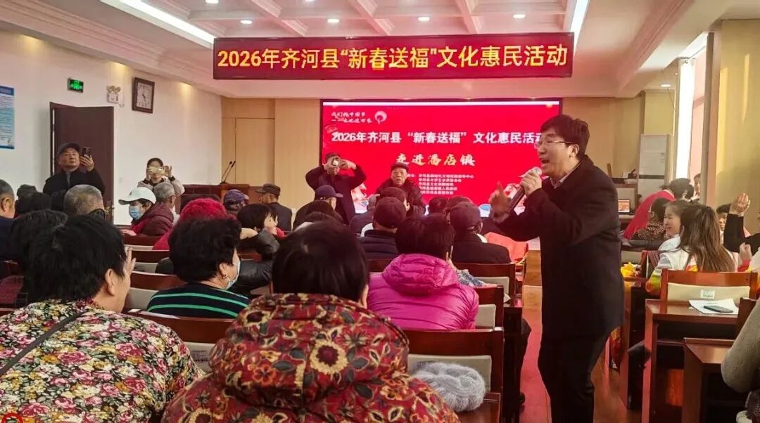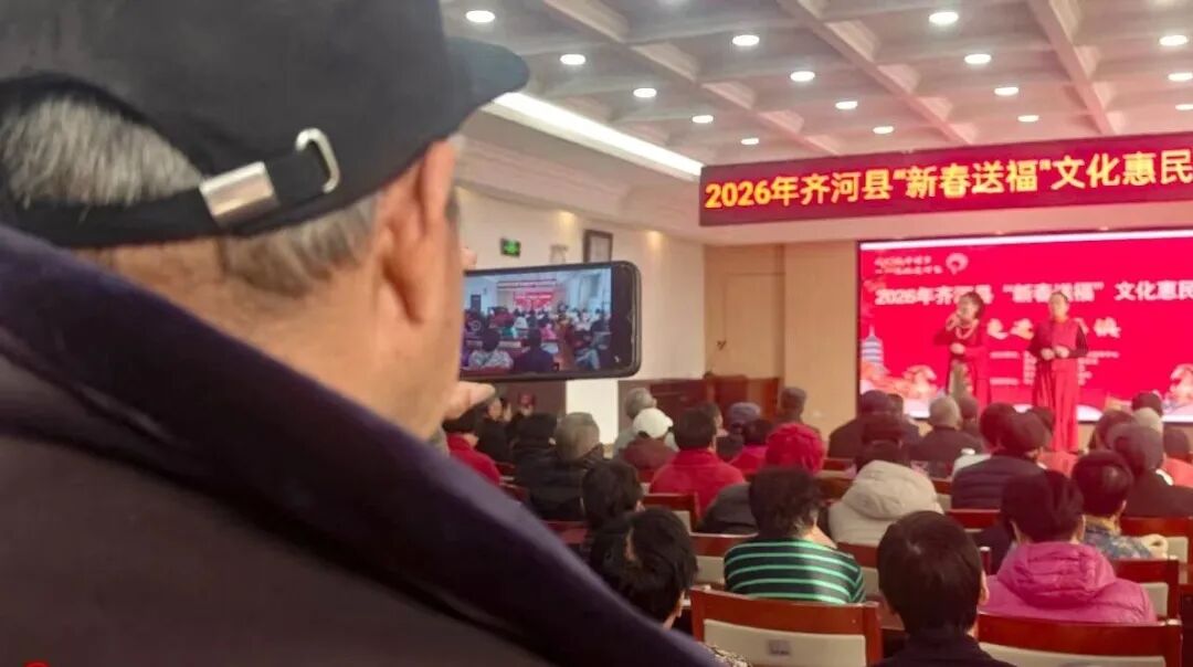 2月4日下午,齐河县潘店镇新时代文明实践中心热闹非凡,当《咱老百姓》的熟悉旋律响起,专业演员王连强一段清唱,引发了全场的大合唱。没有指挥,不分男女老少,质朴的歌声从四面八方汇聚、升腾,让舞台的边界彻底消失。这一刻,演员与观众融为一体,这场立春时节的文化惠民演出达到了情感的沸点。