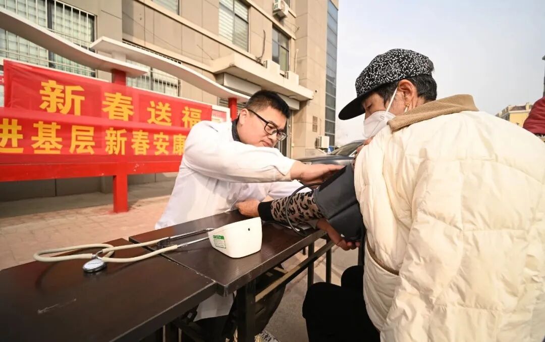 暖意,也从室内延伸至室外。政务中心门口的义诊台前,潘店镇中心卫生院的医生们将健康关怀送到了戏台边。“立春了,您这血压更得注意平稳。”一声声叮嘱,融入春风。刚量完血压的王阿姨心里踏实了:“这下看演出更安心。春天开始,把身体调理好,日子才更有奔头。”
